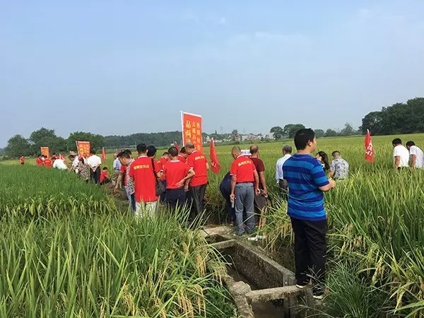 9月24日早上8點半,參會人員集合,共同乘大巴來到樂平市后港鎮(zhèn)新菱田示范田處,一行人分兩批次到田間查看晶兩優(yōu)龍占的田間表現(xiàn),百分農(nóng)業(yè)袁應(yīng)亮現(xiàn)場講解晶兩優(yōu)龍占的品種特性。各位代理商有序觀看田間整體表現(xiàn),對龍占分蘗、株葉形態(tài)、結(jié)實率等各方面表現(xiàn)非常滿意,并在示范點合影留念。