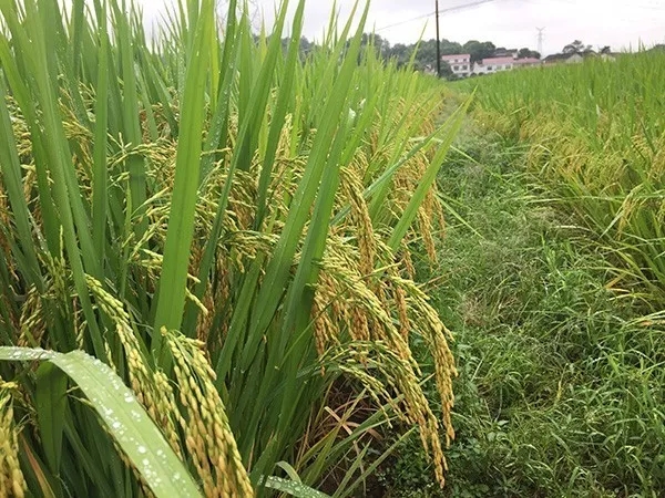 今年的連續(xù)高溫,隆兩優(yōu)1988卻有不低于90%的結(jié)實率,事實證明了這個品種耐高溫的能力超強。隆兩優(yōu)1988的結(jié)實率高達85%,這與其耐高溫、耐低溫的能力密切相關。隆兩優(yōu)1988株高適中,其基部節(jié)間短,桿子較粗,有韌性,所以其抗倒能力極強。此次觀摩很多經(jīng)銷商用力壓莖稈,隆兩優(yōu)1988都能很快恢復直立,莖稈彈性極好。