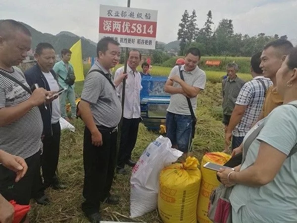 2017年9月24日,在貴州省黔東南州臺江縣,近三十名種業(yè)經銷商,齊聚深兩優(yōu)5814示范田,共同期待完美超級稻的精彩展現。