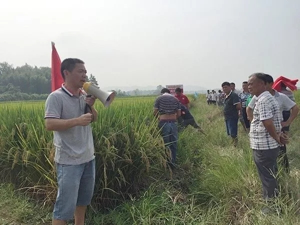 2017年9月24日,上高縣代理商陳總組織開展了隆兩優(yōu)華占大型田間觀摩會。在瀘州鄉(xiāng)的斜西村,設立了隆兩優(yōu)華占各種栽培模式的示范田百余畝,當天到會人數(shù)近百人,場面甚是浩大,會議取得了很好的效果!