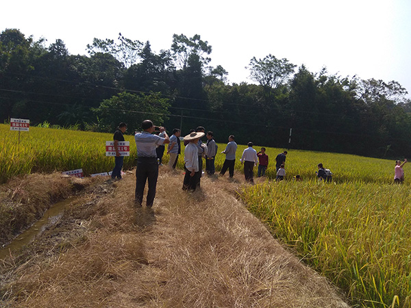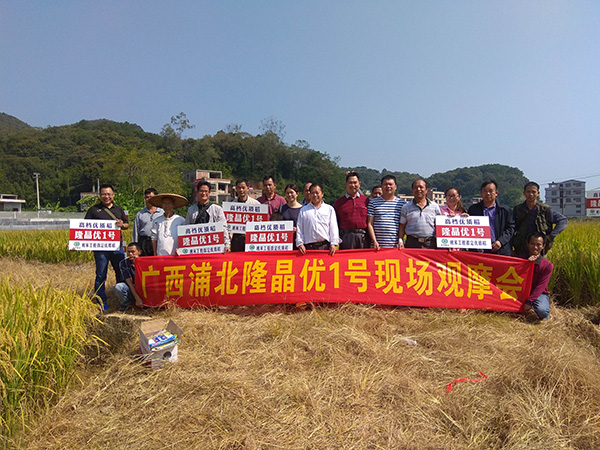 2017年10月29日,世界長(zhǎng)壽之鄉(xiāng)——浦北縣,慶豐農(nóng)業(yè)有限公司組織召開了隆晶優(yōu)1號(hào)觀摩會(huì)。在整齊的示范田里,隆晶優(yōu)1號(hào)一片金黃,枝桿清秀,穗頭整齊,整片田塊基本沒有包括矮縮病在內(nèi)的病蟲害!包括浦北、靈山兩個(gè)縣的種子零售商也朋友們一起參觀了示范基地,認(rèn)真考察了隆晶優(yōu)1號(hào)的表現(xiàn),不斷稱贊!