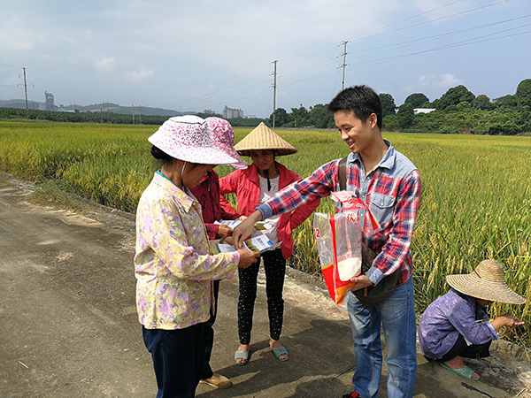 合作伙伴陳桂英對晶兩優(yōu)1212田間管理進(jìn)行講解