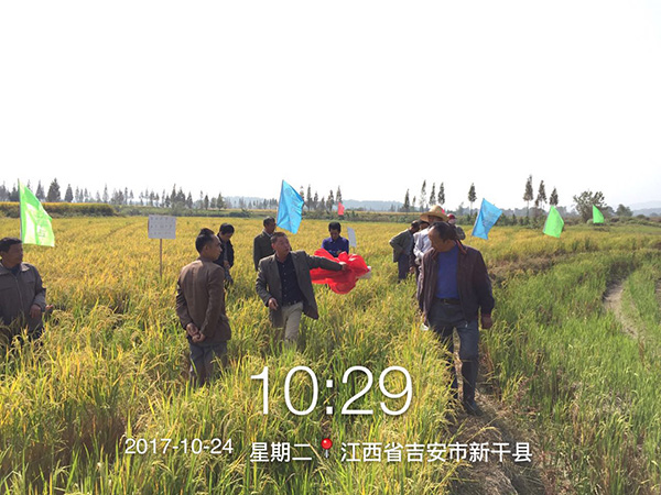 2017年10月24日,江西省新干縣召開了隆兩優(yōu)華占再生稻零售商觀摩及種植大戶預(yù)定會議,全縣各鄉(xiāng)鎮(zhèn)零售商和種植大戶等40余人前往七琴鎮(zhèn)現(xiàn)場觀摩。