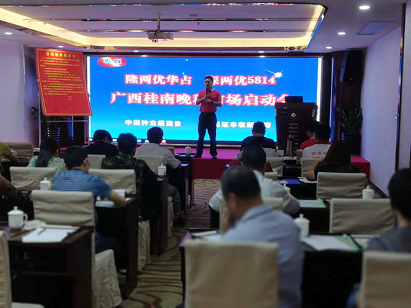 會(huì)議由廣西分公司歐家科主持,首先由廣西分公司蔡經(jīng)理介紹品種銷售情況、市場(chǎng)情況及今年晚稻的銷售政策。蔡總圍繞農(nóng)業(yè)供給側(cè)結(jié)構(gòu)性改革這根主線,以市場(chǎng)需求為導(dǎo)向,在桂南晚稻市場(chǎng)銷售中如何打贏深兩優(yōu)5814和隆兩優(yōu)華占攻堅(jiān)戰(zhàn)作了講解。