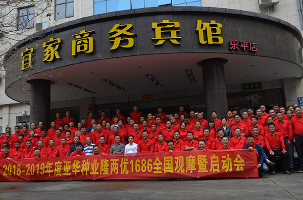 室內(nèi)會(huì)議伊始,由亞華事業(yè)部總經(jīng)理洪祥作題為《不一樣的1686,共享新財(cái)富》的報(bào)告。洪總深入分析當(dāng)前種業(yè)市場(chǎng)狀況,點(diǎn)播種業(yè)之難題、經(jīng)營(yíng)之困惑;同時(shí)告知破局之建議:聚(聚有實(shí)力的公司、聚有市場(chǎng)競(jìng)爭(zhēng)力的品種、聚核心的市場(chǎng)、聚優(yōu)良的服務(wù)和運(yùn)作)。而亞華品牌就是一個(gè)具有強(qiáng)大實(shí)力的平臺(tái),亞華種業(yè)一直秉承“亞華出品,必為精品”的品種理念,從早雜株兩優(yōu)系列,到種業(yè)日不落神話——深兩優(yōu)5814,再到四國(guó)審、超級(jí)稻——隆兩優(yōu)華占的輝煌,亞華種業(yè)以市場(chǎng)的檢驗(yàn)給大家遞交了一份份完美的答卷。超強(qiáng)恢復(fù)系華恢1686是“華占”與“谷梅4號(hào)”雜交,再用其F1與“R608”雜交而來,現(xiàn)在亞華科學(xué)院區(qū)試小組中組配了“隆兩優(yōu)1686”、“晶兩優(yōu)1686”、“瑋兩優(yōu)1686”、“悅兩優(yōu)1686”、“4001s/華恢1686”、“3158s/華恢1686”等一系列具有市場(chǎng)競(jìng)爭(zhēng)力的品種。洪總最后說到:“希望大家能夠抓住機(jī)遇、迎接挑戰(zhàn)、再造爆品、共享新財(cái)富”。