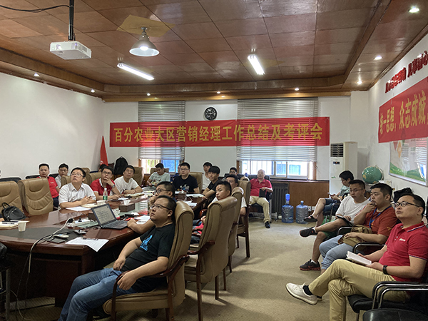 2020年7月5日,百分事業(yè)部大區(qū)營銷經(jīng)理年度工作總結(jié)與考評會(huì)在長沙國家雜交水稻中心召開,本次會(huì)議由副總經(jīng)理陳鋒主持,各大區(qū)負(fù)責(zé)人參與匯報(bào),8人考評小組參與考評,百分事業(yè)部所有在長營銷人員均參會(huì)學(xué)習(xí),百分事業(yè)部總經(jīng)理江潤良出席會(huì)議。