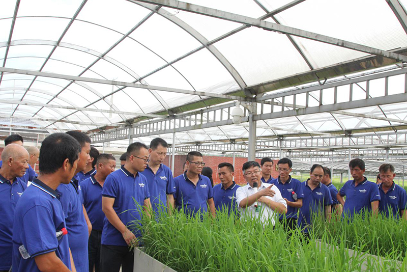 其后抵達亞華科學院關山基地進行參觀學習,由亞華科學院楊遠柱院長等科學院其他領導帶隊大戶,參觀了科學院1500畝的科研基地,介紹亞華科學院發(fā)展狀況,從雜交稻強優(yōu)勢品種父母本的選取、新組合的選育測試、特殊品種的篩選測試(耐除草劑測試、耐高溫耐低溫測試、相對低鎘品種測試、抗稻飛虱品種測試、耐旱耐濕品種測試)等多個方面全面細致的對隆平科研實力做了詳細介紹,大戶在豐富知識見識的同時,對隆平高科的軟硬實力有了更深層次的理解認識,對隆平高科未來的強優(yōu)勢品種充滿期待。