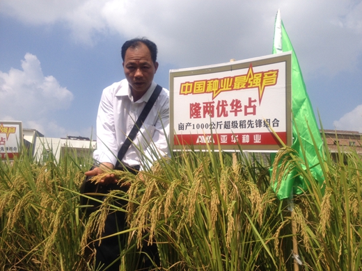 2014年11月1日,在素有“廣西糧倉”之稱的貴港市,經(jīng)銷商潘漢東組織港南、港北、覃潭三區(qū)的20多位重點(diǎn)鄉(xiāng)鎮(zhèn)經(jīng)銷商,齊聚港南區(qū)新塘鄉(xiāng)觀摩亞華種業(yè)重磅推出的戰(zhàn)略性新品種-“中國龍稻”隆兩優(yōu)華占。