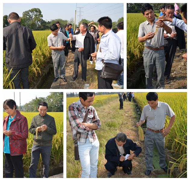 在前往示范田的路上,一個零售商不斷的說自己今年銷售30余件Y兩優(yōu)***品種,其畝產(chǎn)1500余斤,談到其他品種,表現(xiàn)出一副漠不關心的樣子。但是,一到示范田,他震驚了,并感嘆道隆兩優(yōu)華占做二晚產(chǎn)量可以堪比中稻,明年一定在彭澤做推廣并做大面積示范。零售商們情不自禁的下田摘取稻穗,紛紛贊嘆自己賣了十幾年的水稻種子,這么好的品種第一次見,甚至有人表示今天目睹隆兩優(yōu)華占,不虛此行500里。