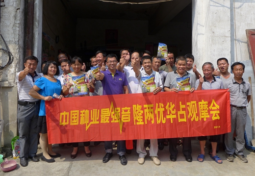 2014年9月27日,20余名鄉(xiāng)鎮(zhèn)經(jīng)銷商齊聚江西銅鼓大塅鎮(zhèn)古橋村,共同參觀由湖南亞華種子有限公司推出的又一強勢品種——隆兩優(yōu)華占。雖然烈日當(dāng)頭,但也阻擋不了大家的熱情,對于好的品種他們總是不吝惜贊美之詞。