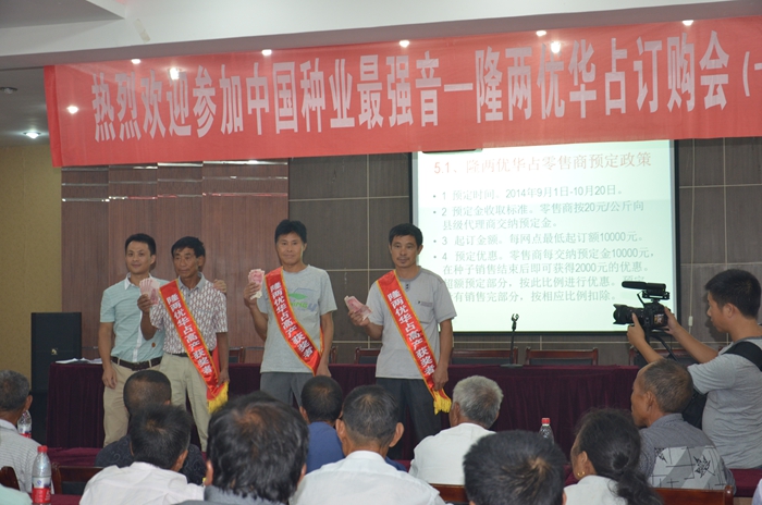 隨后的室內(nèi)會議里,亞華種業(yè)江西分公司總經(jīng)理谷恩華向大家介紹了隆兩優(yōu)華占的幾大優(yōu)勢和公司今后幾年的操作思路,并講解了隆兩優(yōu)華占在各地的表現(xiàn)和預(yù)定情況。接著種植示范戶向介紹了種植經(jīng)驗和品種優(yōu)勢?,F(xiàn)場公布估產(chǎn)競猜獎將會議推向高潮,一共有6位經(jīng)銷商和種植戶獲得估產(chǎn)大獎。