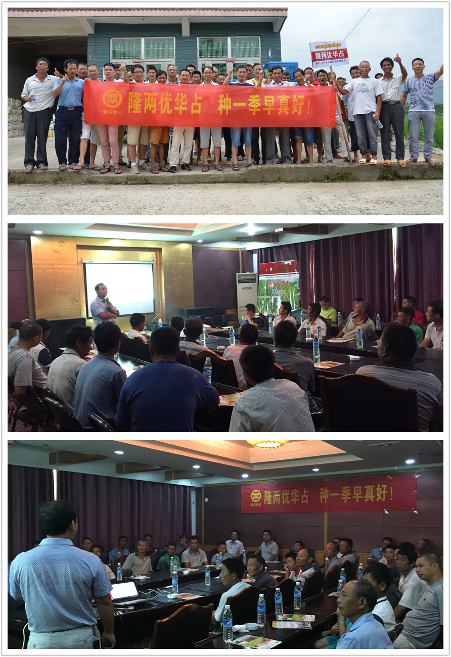 在室內(nèi)會議上,江西分公司總經(jīng)理谷恩華向大家詳細(xì)介紹了隆兩優(yōu)華占的特征特性,并且講解了明年在豐城的操作思路,堅持做預(yù)定銷售。隨后一位當(dāng)?shù)氐慕?jīng)銷商也向大家分享了種植隆兩優(yōu)華占的感受,向大家強力推薦這個好品種。