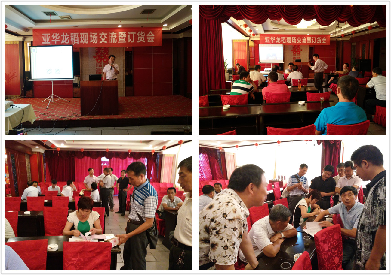 觀(guān)摩后在八方賓館進(jìn)行了交流與定購(gòu),亞華種業(yè)劉松經(jīng)理就預(yù)定營(yíng)銷(xiāo)政策進(jìn)行了解析,并對(duì)亞華龍稻的栽培技術(shù)作了強(qiáng)調(diào),大家一致認(rèn)為“亞華龍稻”是目前最好的一個(gè)品種:產(chǎn)量高、抗性好、米質(zhì)優(yōu)、抗倒強(qiáng),明年要加大宣傳力度、擴(kuò)大辦點(diǎn)規(guī)模、加強(qiáng)技術(shù)培訓(xùn)、擴(kuò)大種植面積,6個(gè)種植“亞華龍稻”的鄉(xiāng)鎮(zhèn)介紹了種植情況與栽培技術(shù),并認(rèn)為還可改進(jìn)方法提高產(chǎn)量,首先是要插足基本苗,大苗洗插每畝大田用種量1公斤,拋秧與撒播每畝大田用種量1.25----1.5公斤;再就是施足肥料,每畝大田施45%含量的復(fù)合肥40公斤,尿素10公斤,氯化鉀10公斤,這樣能達(dá)到更高的產(chǎn)量,大大提高農(nóng)戶(hù)的種植效益。