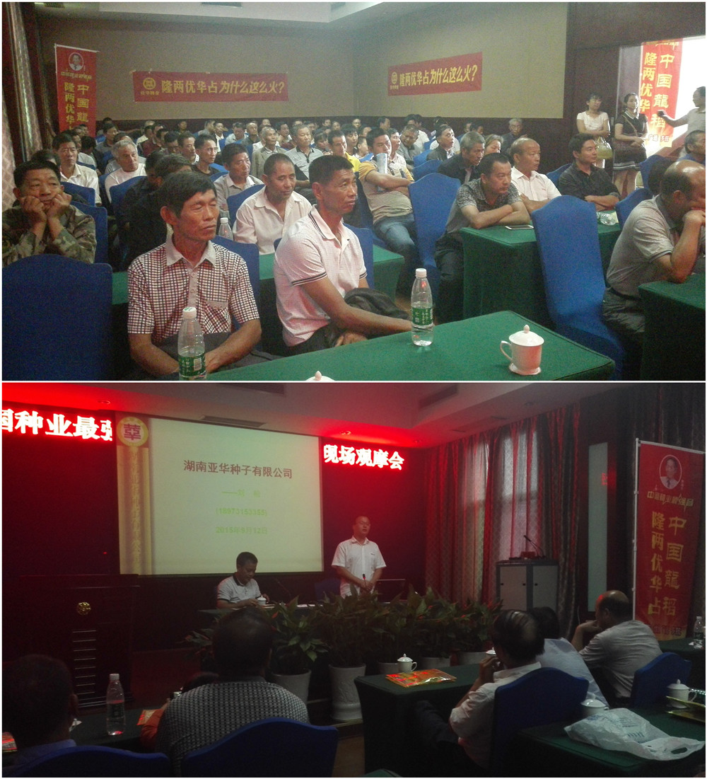 觀摩結(jié)束后,室內(nèi)會(huì)議在澧縣桃花灘賓館召開(kāi),會(huì)上,種植戶代表胡定文分享了種植隆兩優(yōu)華占的經(jīng)驗(yàn),小渡口經(jīng)銷商劉老板就隆兩優(yōu)華占的特征、特性及適合當(dāng)?shù)氐挠梅N量、栽培管理方式進(jìn)行了分析講解。亞華種業(yè)大區(qū)經(jīng)理劉松就公司發(fā)展及品種的運(yùn)作、市場(chǎng)管理等方面和大家進(jìn)行了講解。最后由澧縣代理商將隆兩優(yōu)華占的預(yù)定優(yōu)惠政策進(jìn)行了解讀,讓農(nóng)戶們能夠種上好品種、獲得好收成!