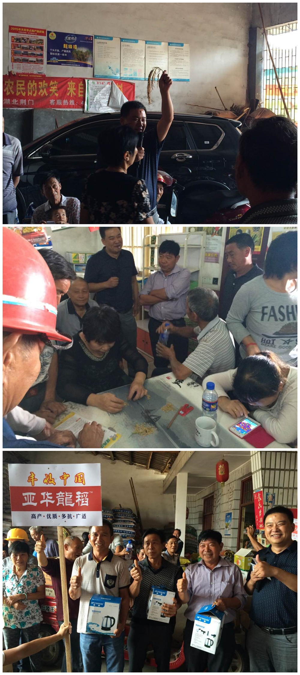 2015年9月16日,來(lái)自湘潭各鄉(xiāng)鎮(zhèn)的優(yōu)秀零售商和中路鋪鎮(zhèn)的種植大戶共80余人一同觀摩了40畝撒播的亞華龍稻大田。