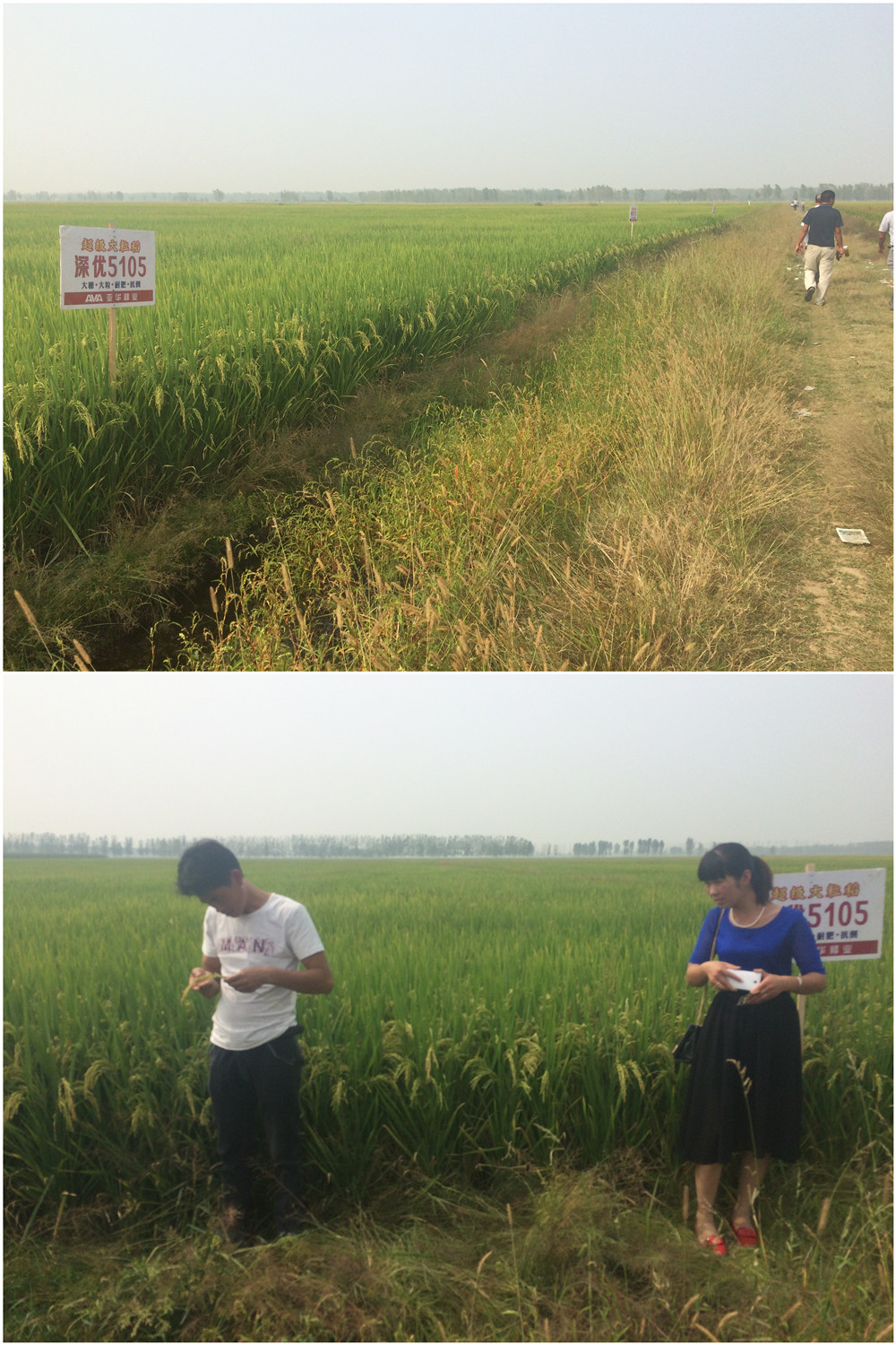 示范田是代理商自己的,面積有40多畝,全部是撒播。參會(huì)的零售商仔細(xì)地查看了品種的長(zhǎng)勢(shì)、病蟲害等情況。大家都被品種清秀的長(zhǎng)相、飽滿的谷粒、旺盛的分蘗力深深的折服。來自汪集的零售商付中立說他今年也弄了幾畝深優(yōu)5105的直播稻,表現(xiàn)比這個(gè)漂亮多了,明年他要把自己家的30畝田全部種上這個(gè)品種。
