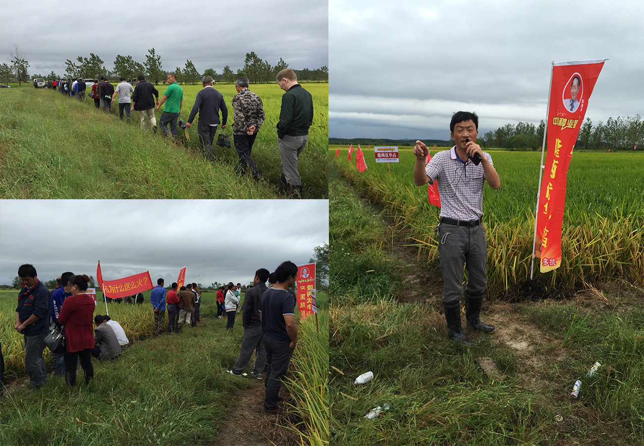 2015年9月30 日,一夜風(fēng)雨過(guò)后,隆兩優(yōu)華占觀摩會(huì)在永修如期舉行,盡管風(fēng)雨未減,但絲毫沒(méi)有減退大家觀看龍稻的熱情。上午九點(diǎn)鐘,浩浩蕩蕩的大隊(duì)伍挺進(jìn)了立新鄉(xiāng)中村,五十余人排起的大長(zhǎng)龍來(lái)到了三十畝連片的隆兩優(yōu)華占示范田。