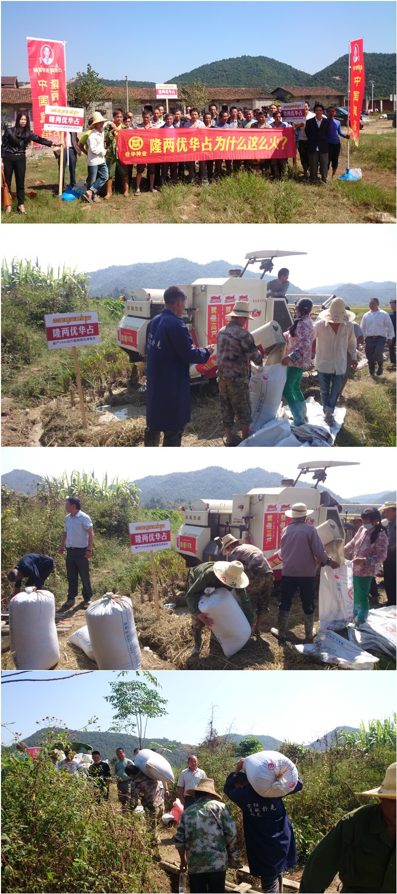 這片隆兩優(yōu)華占連片種植田塊有60多畝,由新安村農(nóng)戶王仕高(13755955705)種植,已經(jīng)開始陸續(xù)收割了,本次收割一丘0.7畝的田塊,收獲濕谷1290斤,合一畝1842斤,由于收割較晚,谷子水分含量低,但農(nóng)戶依然要求按10%的水分扣除,如此折合干谷畝產(chǎn)依然達1657斤。看著一袋又一袋的谷子裝好,農(nóng)戶臉上露出了滿意的笑容。王仕高在現(xiàn)場給大家講:“我這兩天收了幾十畝隆兩優(yōu)華占了,濕谷最少都有1600斤,這個谷子很沉,比我去年種的品種增產(chǎn)不少。”現(xiàn)場看過的農(nóng)戶也都對隆兩優(yōu)華占贊不絕口,都表示明年一定首選隆兩優(yōu)華占,這么好的品種,不種那是一大損失??!