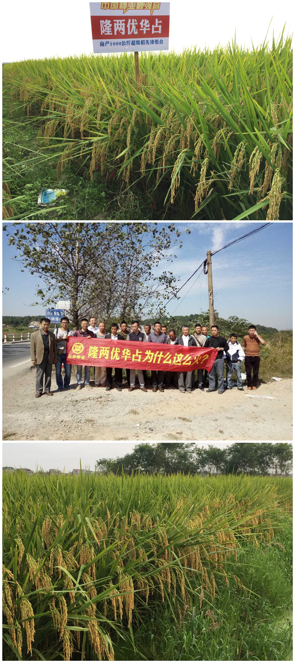 在前來樂平的路上,大戶李春華不停地說自己今年種植20余畝某榮優(yōu)華占,畝產(chǎn)濕谷1520余斤,談到其他品種,他完全不屑一顧。但是一到樂平種田大戶髙彩凡的田塊,他震驚了,并感嘆到:“這是什么品種?他居然種的這么好?”此田塊種植大戶高菜凡(鄱陽(yáng)人)告訴他:“這是隆兩優(yōu)華占,種了兩年,其產(chǎn)量和抗病性很好。感覺今年一季稻還沒有自己去年雙季晚稻表現(xiàn)好(2014年,現(xiàn)場(chǎng)測(cè)產(chǎn)種田大戶高彩凡隆兩優(yōu)華占二晚2塊田,平均濕谷產(chǎn)量1827斤/畝)”。鵝湖潘滿生(18079806101)說,去年鄱陽(yáng)大戶告訴他,市場(chǎng)上現(xiàn)有一個(gè)新品種隆兩優(yōu)華占產(chǎn)量不錯(cuò),今天他慕名而來,只是想親眼看看大家津津樂道討論著的隆兩優(yōu)華占到底怎么樣,眼見為實(shí),真是比大家傳頌的還要好!明年會(huì)大規(guī)模種植!