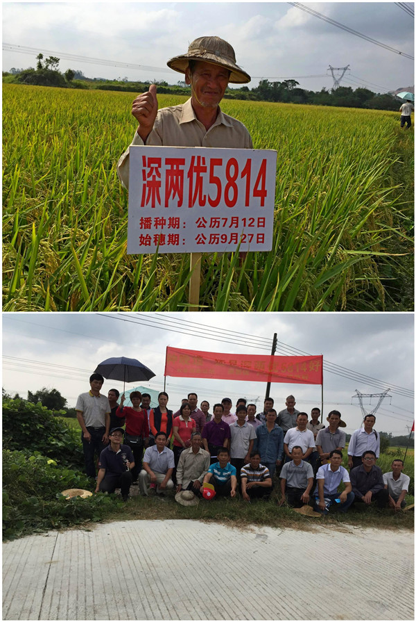 深兩優(yōu)5814晚稻示范種植戶薛子平高興地跟大家介紹:“深兩優(yōu)5814我已經(jīng)連續(xù)第三年種植了,今年我總共種了40多畝,我最喜歡它高產(chǎn)穩(wěn)產(chǎn)的特點(diǎn)。你們看,今年至少畝田1200斤!而且它的米又軟又香,吃起來口感特別好,這是我?guī)啄陙矸N植過最好的品種,真是完美超級(jí)稻啊”!