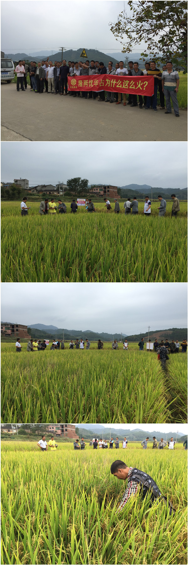 隆兩優(yōu)華占,國審稻瘟病綜合指數(shù)2.2級,在崇雒鄉(xiāng)的示范田里得到了真實的展現(xiàn),令眾人驚嘆。農(nóng)資店老板們異口同聲地說:“今年這種天氣,沒有哪個品種不會得稻瘟,今天看了隆兩優(yōu)華占,這表現(xiàn)確實不錯,不僅沒有一點穗瘟,結(jié)實率也有這么高”!