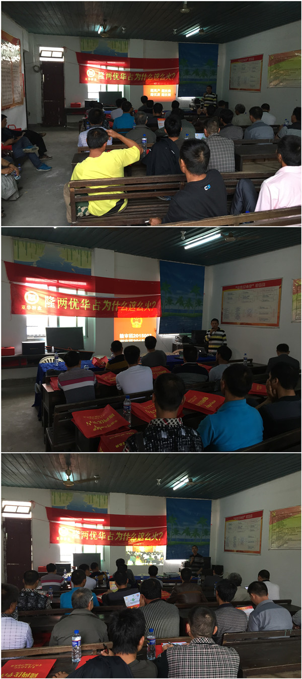 隨后,湖南亞華種業(yè)福建區(qū)域負責人王志宜在會議室向大家全面地展示了隆兩優(yōu)華占超高產(chǎn)、超抗病、超抗倒、超優(yōu)質(zhì)的特征特性,及該品種在全國的優(yōu)異表現(xiàn)。農(nóng)資店老板們?nèi)绔@珍寶般的興奮將整場會議推向了高潮,“什么時候可以訂購種子?”的聲音此起彼伏…