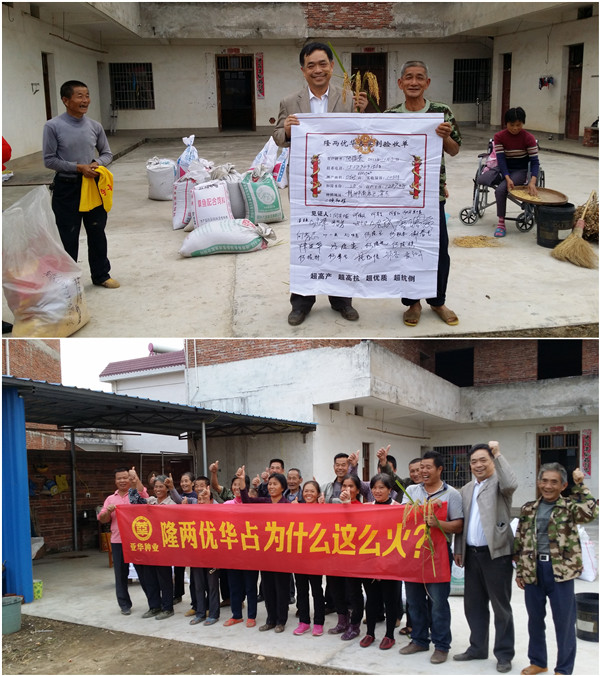 今年這個村子里80%種的都是隆兩優(yōu)華占,往年這個時候稻子已經(jīng)收割完畢,今年氣溫偏低,晚稻生育期都延長了,老鄉(xiāng)們有點等不及。今天來測產(chǎn)就是用隆兩優(yōu)華占的優(yōu)秀表現(xiàn)給大家吃個定心丸,用實事求是的態(tài)度來服務(wù)農(nóng)民、打造品牌!