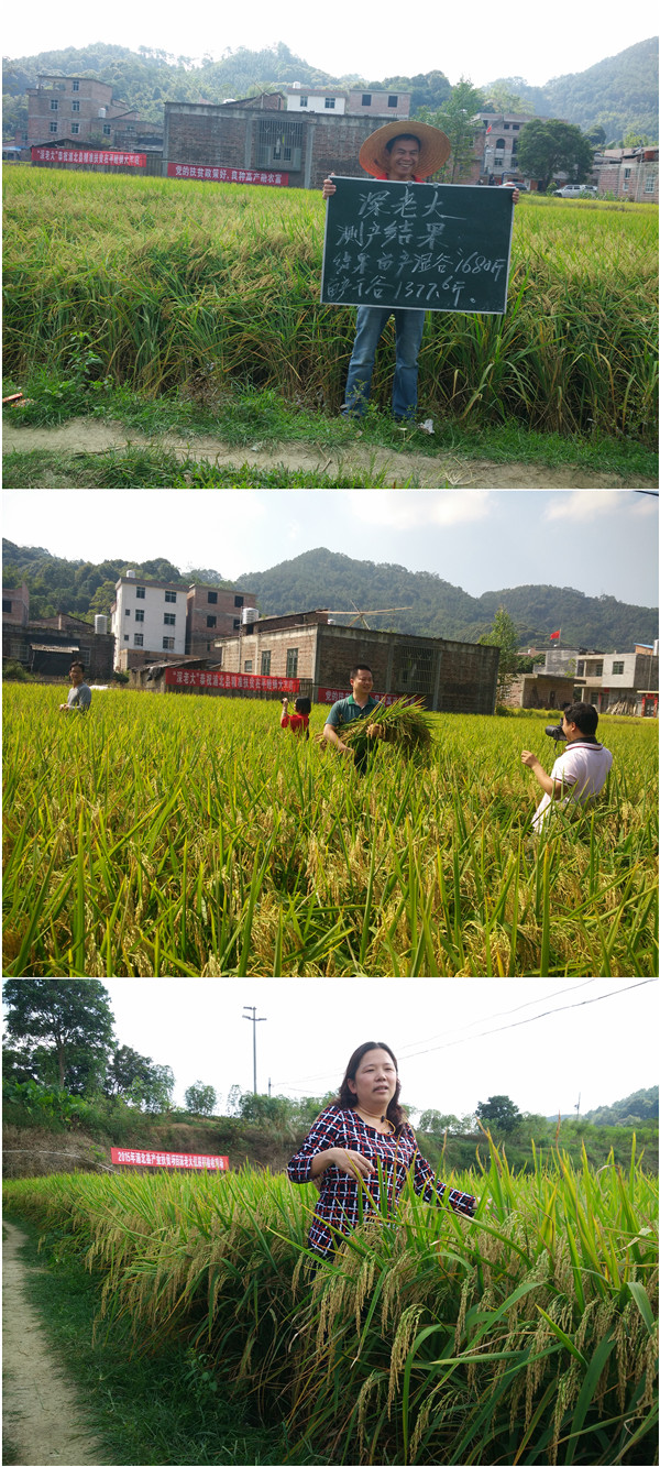 按照縣政府“扶誰、怎么扶、誰來扶”的指導(dǎo)精神,浦北縣良晨農(nóng)業(yè)合作社選擇了在貧困人口集中的浦北縣平睦鎮(zhèn)推廣高產(chǎn)好吃的優(yōu)良品種“深老大”取得了良好的經(jīng)濟(jì)效應(yīng)和社會效應(yīng)。11月5日,在這個(gè)送秋迎冬的日子,縣委常委、副縣長、“美麗廣西”鄉(xiāng)村建設(shè)(扶貧)工作隊(duì)隊(duì)長李國君博士,縣扶貧辦領(lǐng)導(dǎo)馮民,平睦鎮(zhèn)秦鎮(zhèn)長、黃書記及縣貧困村主任、書記,各鄉(xiāng)鎮(zhèn)農(nóng)技服務(wù)推廣站負(fù)責(zé)人頂著烈日,不顧幾十公里山路顛簸,親臨“深老大”測產(chǎn)驗(yàn)收現(xiàn)場,評估超級稻“深老大”在產(chǎn)業(yè)扶貧中的經(jīng)濟(jì)效應(yīng)及社會效應(yīng)。