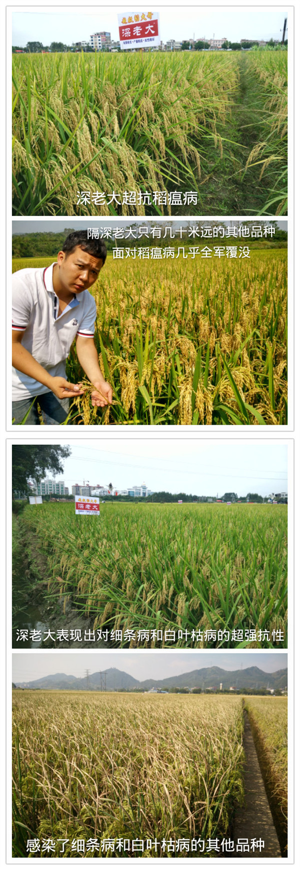 廣西橫縣是當(dāng)之無(wú)愧的中國(guó)茉莉花之鄉(xiāng)。然而,在這個(gè)秋天,成片成片的水稻細(xì)條病和白葉枯病讓部分沉浸在花海之中的農(nóng)民笑不起來(lái),在細(xì)菌性病害肆虐的情況下今年橫縣的水稻種植情況非常不理想,但有一個(gè)品種卻表現(xiàn)出超強(qiáng)的抗性,這就是““深老大””。經(jīng)過(guò)今年幾千畝的小面積推廣,“深老大”無(wú)論在產(chǎn)量、抗性、米質(zhì)方面已經(jīng)表現(xiàn)出了強(qiáng)大的生命力,特別是對(duì)水稻細(xì)菌性病害——細(xì)條病和白葉枯病有超強(qiáng)抗性,相較其他優(yōu)質(zhì)品種來(lái)說(shuō)優(yōu)勢(shì)依然特別明顯。