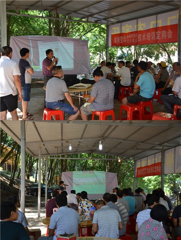 會(huì)議上,首先由亞華種業(yè)區(qū)域經(jīng)理黃凱著重講解了隆兩優(yōu)華占“超高產(chǎn)、超抗病、超抗倒、米質(zhì)優(yōu)”這四大優(yōu)勢(shì)特點(diǎn),還分享了隆兩優(yōu)華占在全國各地的優(yōu)勢(shì)表現(xiàn)和審定情況,讓隆兩優(yōu)華占的各種優(yōu)勢(shì)深深印在了各位經(jīng)銷商和種植大戶的腦海中。接下來,合作人曹經(jīng)理再次強(qiáng)調(diào)了隆兩優(yōu)華占四大優(yōu)勢(shì),并通過實(shí)際表現(xiàn)證明了隆兩優(yōu)華占四大特點(diǎn)的真實(shí)性。然后,黃凱經(jīng)理還講解了隆兩優(yōu)華占農(nóng)戶預(yù)定政策,正式開啟農(nóng)戶預(yù)定?,F(xiàn)場(chǎng)85%的種植大戶交付了預(yù)定金,預(yù)定逾6000斤。
