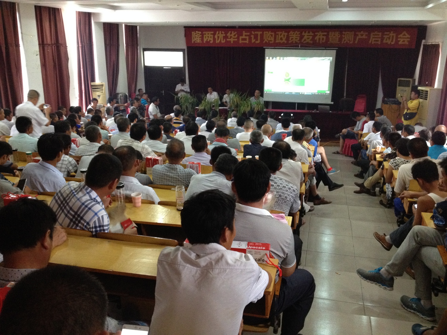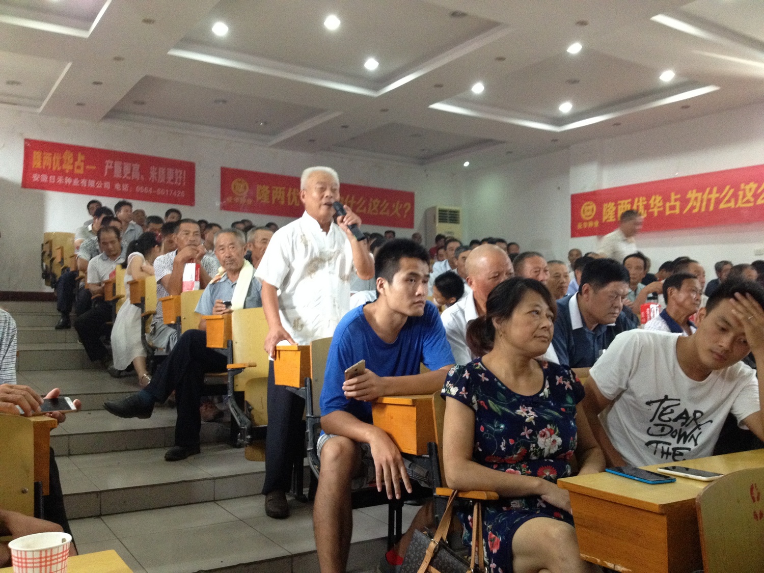 2016年8月19日,在安徽日禾種業(yè)的號召、組織之下,208名來自霍邱縣各個鄉(xiāng)鎮(zhèn)隆兩優(yōu)華占零售商和種田大戶抱著更深入了解隆兩優(yōu)品種,以及迫切想了解本年度隆兩優(yōu)華占操作方法和政策,冒著37度的高溫匯聚在霍邱縣黨校大禮堂。