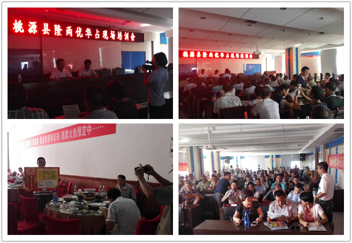 在室內(nèi)會場上,鄉(xiāng)鎮(zhèn)經(jīng)銷商及種植大戶代表紛紛發(fā)言,分享了在推廣和種植過程中的經(jīng)驗及品種認識,簡單的說就是種的放心、看著舒心。桃源縣興隆米業(yè)負責人針對現(xiàn)行的糧食收購形式進行分析和講解,重點突出了再生稻米質的優(yōu)勢,并表示愿意對隆兩優(yōu)占客戶再生稻第二季稻谷進行合同式收購,切實保證高產(chǎn)情況下農(nóng)民的收入。會上,亞華種業(yè)區(qū)域經(jīng)理覃兵從公司及全國推廣的角度,介紹了隆兩優(yōu)華占的品種優(yōu)勢及再生稻栽培關鍵技術。代理商結合公司政策,鼓勵農(nóng)戶積極預定,切實讓種植大戶們享受到預定優(yōu)惠,讓更多的農(nóng)戶種上好品種!。