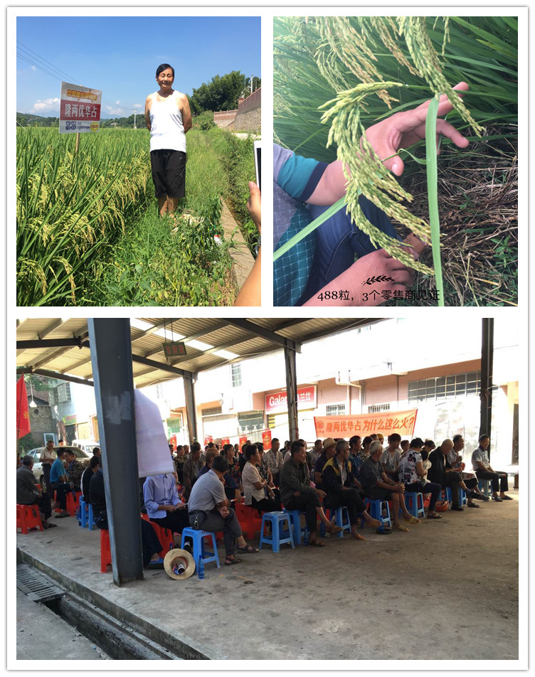 在長江鎮(zhèn)王夏輝王站長的熱心組織下,來自衡山各地的農(nóng)資零售商和種田大戶一大早就來到長江鎮(zhèn),大家齊聚一堂,首先由農(nóng)業(yè)局相關(guān)專家領(lǐng)導(dǎo)向各位農(nóng)友介紹了隆兩優(yōu)華占的相關(guān)特性,栽培要點(diǎn)及在全國各地的優(yōu)秀表現(xiàn),隨后由當(dāng)?shù)胤N植大戶發(fā)言,實(shí)話實(shí)說地發(fā)表對隆兩優(yōu)華占的真切感受!組織者王站長在前二年自己試種后,最后獲得了900公斤的干谷,自此開始了向當(dāng)?shù)剞r(nóng)戶的推廣,2016年隆兩優(yōu)華占供種不足,供種較晚,在前期多雨,后期持續(xù)高溫影響結(jié)實(shí)率的情況下,在長江鎮(zhèn)推廣的上千畝稻田普遍產(chǎn)量在800公斤以上!足以體現(xiàn)隆兩優(yōu)華占的高抗性和穩(wěn)產(chǎn)性!如果結(jié)合再生稻推廣種植,噸糧稻由此誕生!