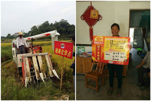 2016年9月18日上午,來自八寶鎮(zhèn)各村莊的170余名農(nóng)戶來到位于白水淌村尹超的田間,一起見證隆兩優(yōu)華占的測產(chǎn)情況。