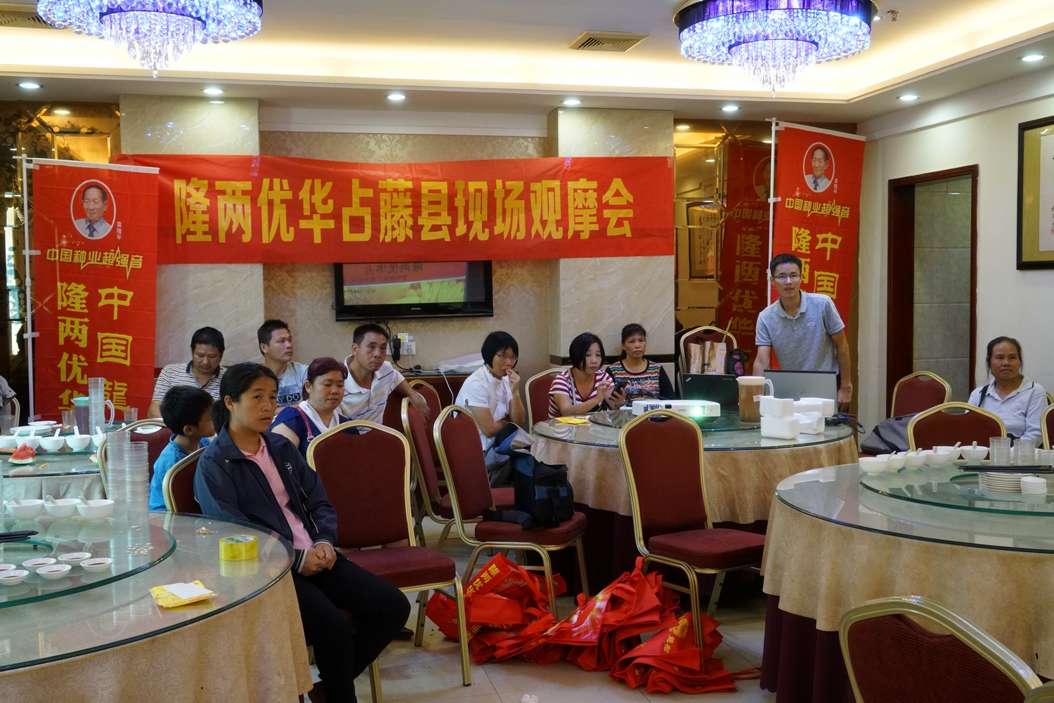 田間觀摩結(jié)束后,熱情高漲的零售商來到藤縣東信大酒店,在室內(nèi)會議上,先由亞華種業(yè)廣西分公司張經(jīng)理介紹公司文化以及隆兩優(yōu)華占的特征特性,并與大家分享隆兩優(yōu)華占在全國各地的大田表現(xiàn)。為了更好地宣傳和推廣隆兩優(yōu)華占這個標(biāo)桿品種,希望大家抓緊這短短半個月的時間,多召開農(nóng)民觀摩和測產(chǎn)驗收會,讓更多的農(nóng)戶了解隆兩優(yōu)華占。
