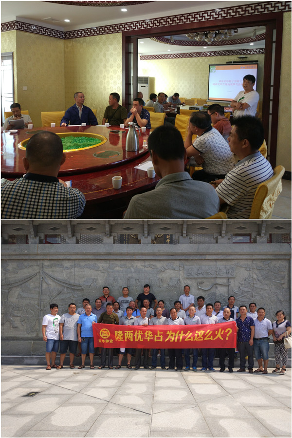 接著安化縣隆兩優(yōu)華占代理商組織了座談討論會。首先由湖南亞華種子有限公司湘北大區(qū)康經(jīng)理就隆兩優(yōu)華占的育種由來、隆兩優(yōu)華占現(xiàn)階段的品種影響及后續(xù)趨勢、隆兩優(yōu)華占預定的運作思路、隆兩優(yōu)華占的各地表現(xiàn)圖片及新聞報道視頻向與會代表做了PPT的介紹。接著安化隆兩優(yōu)華占代理商韓總就隆兩優(yōu)華占預定的具體操作細則及相關(guān)政策做了介紹,同時做了總結(jié)性的發(fā)言并說道:具備良好抗性的隆兩優(yōu)華占非常適合在安化縣種植,而且豐產(chǎn)性好,米質(zhì)優(yōu),希望大家能大力推廣這么好的品種。