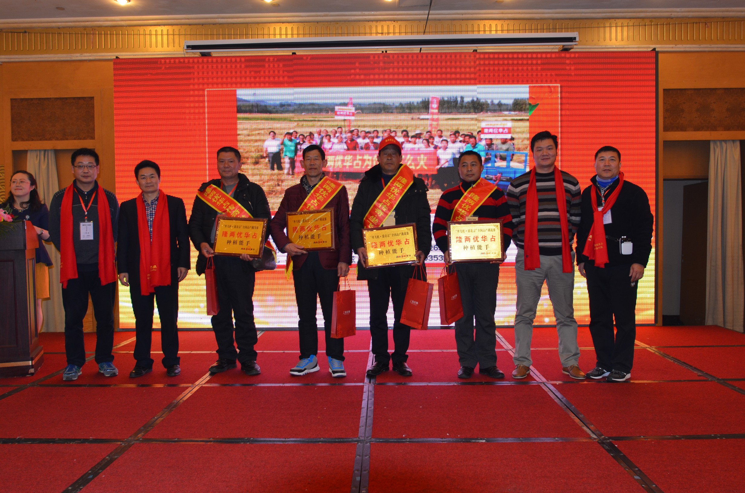 12月21日,隆兩優(yōu)華占全國高產(chǎn)挑戰(zhàn)賽規(guī)模盛大的表彰大會在北京斯博瑞飯店舉行,亞華種業(yè)總經(jīng)理孫衛(wèi)華親自出席并發(fā)表講話。隆兩優(yōu)華占在2016年的全國推廣面積已達到600萬畝,成為全國推廣最具影響力的品種,2017年目標(biāo)突破1000萬畝,成為全國推廣面積最大的單一品種。來自全國各地的260余名農(nóng)戶分別上臺接受公司領(lǐng)導(dǎo)的隆重頒獎。