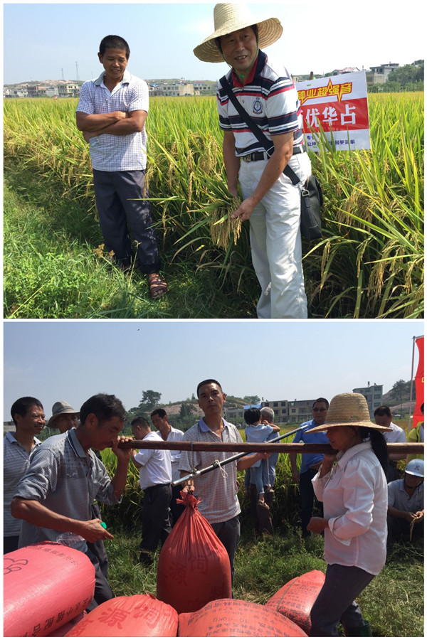 在察看觀摩之后,我們挑選了一塊面積2.85畝的田塊和一塊其他品種的田塊,讓收割機(jī)進(jìn)行收割比較。在大家的見證下,隆兩優(yōu)華占共收濕谷4959斤,平均畝產(chǎn)1740斤,干谷超過(guò)1400斤,而另外一個(gè)品種畝產(chǎn)濕谷在1400斤。該田塊種植戶樊師傅(電話:15070216647)興奮的說(shuō)道:“隆兩優(yōu)華占一袋谷子接近九十斤,比其他品種每袋能多出5到10斤,產(chǎn)量真的非常好,明年我們村里將會(huì)都種隆兩優(yōu)華占”。