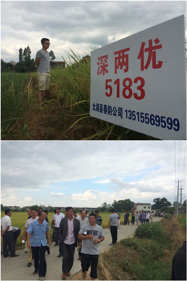 2016年9月17日,中秋假期第三天,是個陽光明媚的好日子,超級水稻深兩優(yōu)5183太湖縣零售商會議在太湖縣春韻公司和代理商汪毅先生的組織下正式召開,來自各個鄉(xiāng)鎮(zhèn)的零售商和大戶上午在圓山大酒店聚集,集合完畢一行一百余人浩浩蕩蕩的向著深兩優(yōu)5183品種觀摩會的現(xiàn)場進發(fā)。
