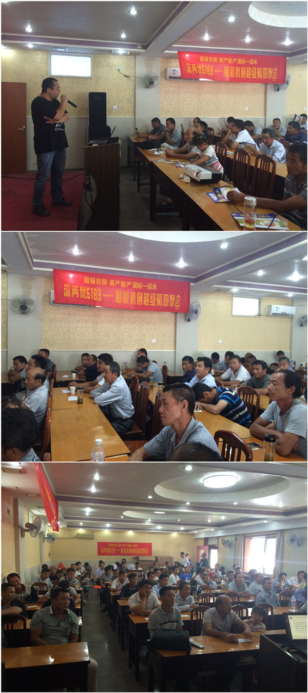 在田間觀摩會結束之后,我們轉入圓山大酒店會議廳,安徽分公司吳陵海經理為廣大零售商和種植大戶們介紹了我們湖南亞華種業(yè)的情況,并對深兩優(yōu)5183品種進行了栽培技術要點培訓。包括施肥要以基肥和有機肥為主,重施底肥,早施追肥,干濕相間促分蘗,看苗補施穗粒肥,后期注意病蟲害的及時防治。眾人聽得津津樂道,好品種就是這么有吸引力!深兩優(yōu)5183,強大超乎你的想象!