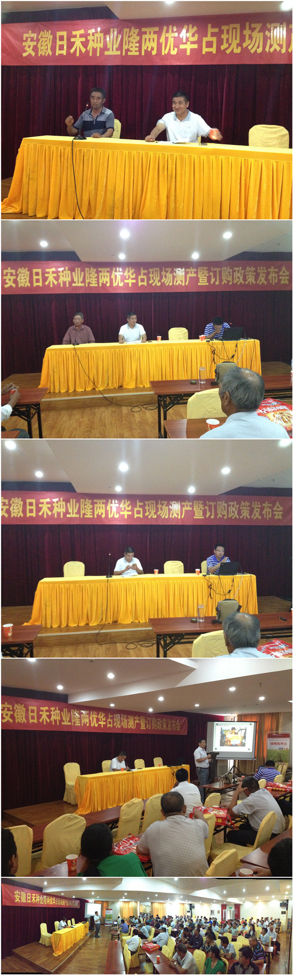 2016年9月14日,正直2016年中秋節(jié)前夕,安徽日禾種業(yè)六安分公司在六安市隆重召開了隆兩優(yōu)華占現(xiàn)場測產(chǎn)暨訂購政策發(fā)布會。隆兩優(yōu)華占一如既往的超強優(yōu)勢,在參會零售商和種田大戶中造成了轟動效果。