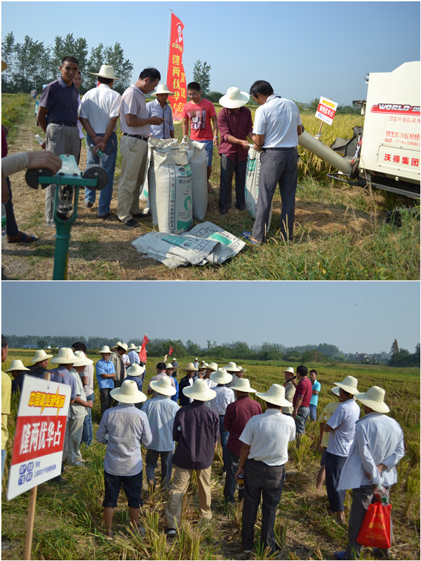 接下來就是用事實說話的時刻,隨著收割工作的完成,GPS定位測量儀也已測出實際面積為1.39畝(667平方米/畝)。隨后稱得濕谷重量為2231斤,扣除水份10%,得到畝產(chǎn)干谷1445斤。種植戶賀映亮既開心又遺憾:“這個產(chǎn)量在今年這個大環(huán)境下當然是沒得說,在我們村里絕對是數(shù)一數(shù)二的。但是隆兩優(yōu)華占實在太緊俏,我今年只買到幾斤,其余的田種的其它品種,比這差多了!”經(jīng)銷商沈總進行了總結(jié):“隆兩優(yōu)華占已在我們監(jiān)利縣成功推廣兩年,其抗病性、抗倒性、耐高溫、高產(chǎn)穩(wěn)產(chǎn)等特性已經(jīng)通過了檢驗,它絕對是一個安全、省心的品種。好的品種,大家都搶著要,往往是供不應(yīng)求,只有提前預定才能保證供貨。”