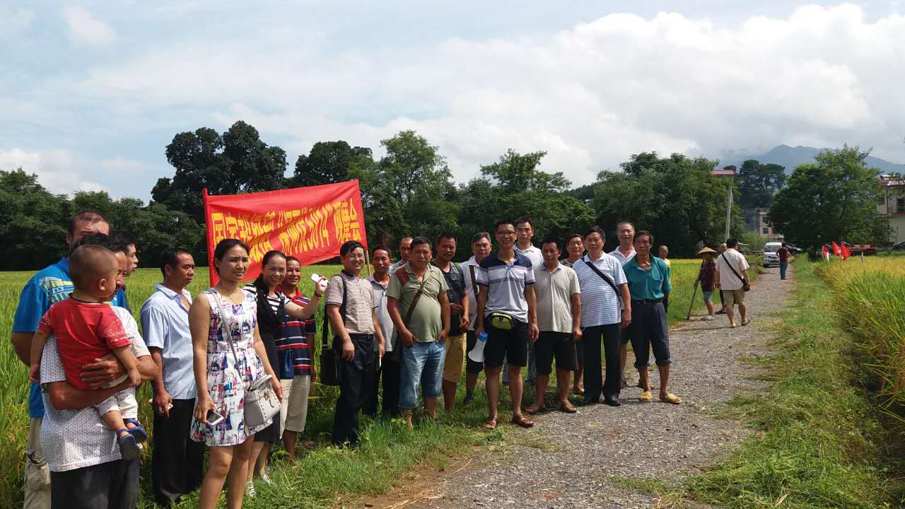 2016年8月13日,在江華代理商鐘老板的組織下,江華部分經(jīng)銷商及種植大戶匯聚在沱江鎮(zhèn)梁木橋村,一起觀摩深兩優(yōu)5814再生稻頭季的種植表現(xiàn)。