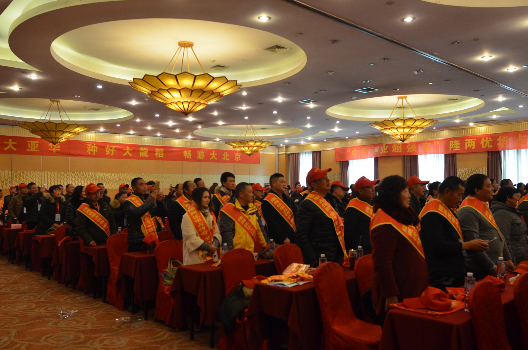 21日上午,工作人員帶領(lǐng)全國隆兩優(yōu)華占全國高產(chǎn)挑戰(zhàn)賽種植能手參觀完國家博物館后,“隆兩優(yōu)華占全國高產(chǎn)挑戰(zhàn)賽表彰大會(huì)”在北京斯博瑞酒店隆重舉行。全國高產(chǎn)獲獎(jiǎng)農(nóng)戶有序進(jìn)入會(huì)場,會(huì)議開始,全體種植能手起立唱響《國歌》以感恩祖國、感恩現(xiàn)代幸福生活,來自全國的隆兩優(yōu)華占高產(chǎn)農(nóng)戶個(gè)個(gè)精神抖擻,國歌聲震撼會(huì)場。