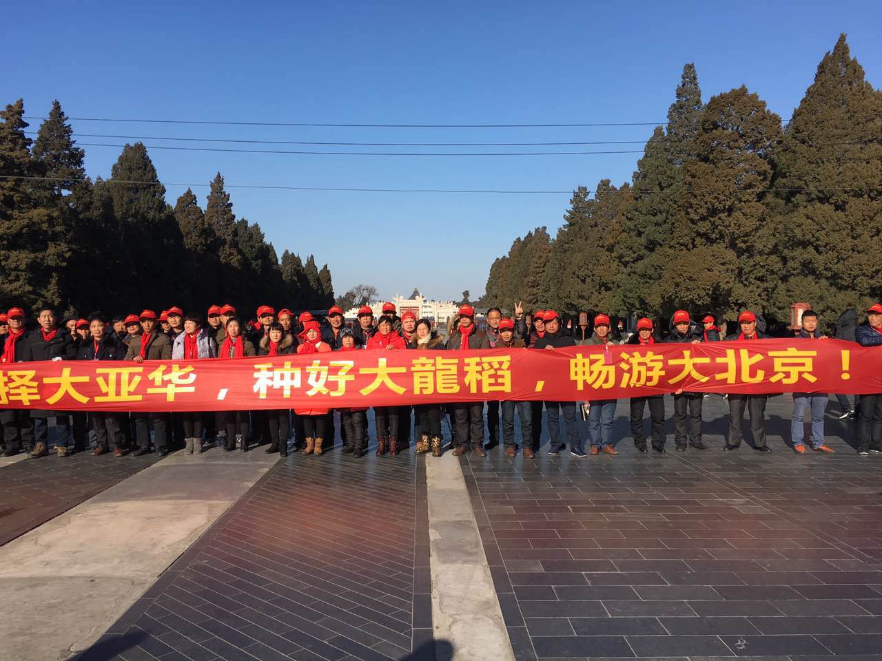 在接下來的幾天里,由工作人員組織全國260多名高產(chǎn)農(nóng)戶游覽祖國首都,第一站是北京天安門。5輛大客車滿滿地裝載著滿心喜悅的農(nóng)戶,大家瞻仰了毛主席紀(jì)念堂主席遺容,在人民英雄紀(jì)念碑前緬懷先烈。翻身不忘共產(chǎn)黨,種地不忘亞華人,這是所有高產(chǎn)農(nóng)戶的心聲,紛紛表示只有亞華種業(yè)這樣的良心企業(yè)才能帶著一輩子沒去過北京的農(nóng)民旅游北京!浩浩湯湯的隆兩優(yōu)華占種植能手們參觀故宮紫禁城,、沿著北京中軸線向北抵達(dá)天壇,一路上歡歌笑語,喜笑顏開,不亦樂乎!