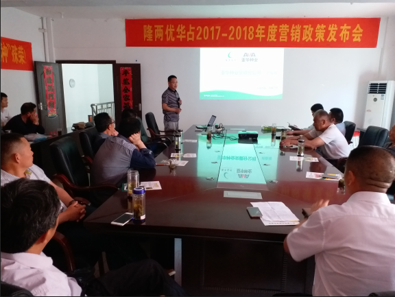2017年5月18日,安徽日禾種業(yè)召開了“隆兩優(yōu)華占2017-2018年度營銷政策”發(fā)布會(huì)。來自霍邱縣各鄉(xiāng)鎮(zhèn)的銷售精英一起參與并見證了這一令人奮進(jìn)的時(shí)刻,并對(duì)下年度的銷售目標(biāo)圈定了一個(gè)初步規(guī)劃。