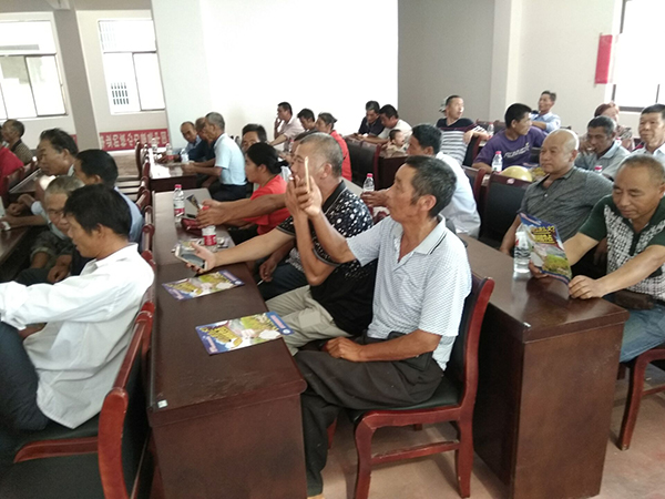 上午10點半,在射埠鎮(zhèn)農技站工作人員和代理商鄧總的組織下,所有零售商和種植大戶參與室內會議。會議中,農業(yè)局工作人員就現(xiàn)代農業(yè)、再生稻在未來幾年內的定位進行了講解,就再生稻的栽培技術進行授課。整個會議過程,湘潭縣電視臺進行了跟蹤報道。