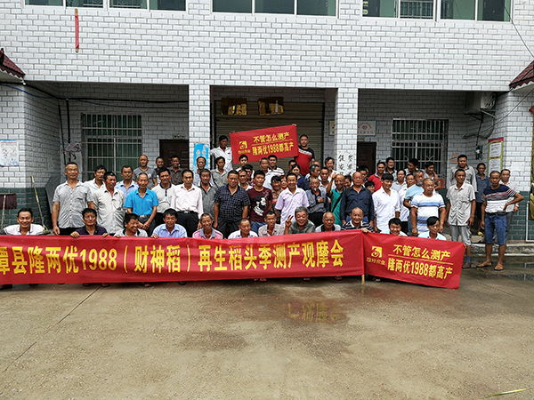 2017年8月14日在湘潭縣隆兩優(yōu)1988代理商的組織下,河口鎮(zhèn)卓江村迎來了70多位來自各鄉(xiāng)鎮(zhèn)的經(jīng)銷商商和種植大戶,一起觀摩隆兩優(yōu)1988示范田并且進(jìn)行現(xiàn)場測產(chǎn)。
