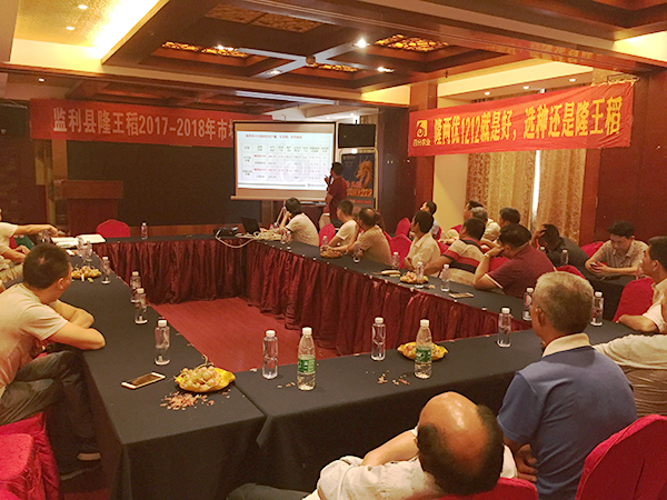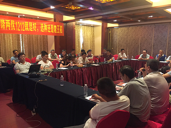 會上,唐經(jīng)理深入淺出的介紹了公司情況、“隆兩優(yōu)1212”的品種特征以及高產(chǎn)栽培技術(shù)。隨后,魏總重點(diǎn)闡述了大公司大品牌的運(yùn)作思路、同類產(chǎn)品在高溫極端天氣下各區(qū)域的表現(xiàn)以及集團(tuán)公司對市場管控的嚴(yán)格操作。