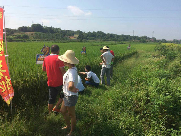 7點整準(zhǔn)時出發(fā)來到觀摩現(xiàn)場,在張總和胡經(jīng)理的帶領(lǐng)下進(jìn)行觀摩。期間胡經(jīng)理向大家講解了隆王稻的特征特性,如抽穗孕穗時經(jīng)歷全程高溫結(jié)實率依然表現(xiàn)突出,分裂強(qiáng)勢等,并和在場隆王互動,現(xiàn)場驗證結(jié)實率高達(dá)89%,平均有效分裂達(dá)30,不愧為隆王稻。